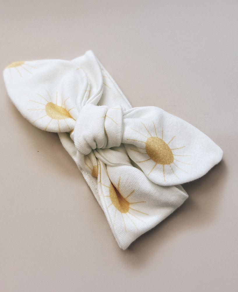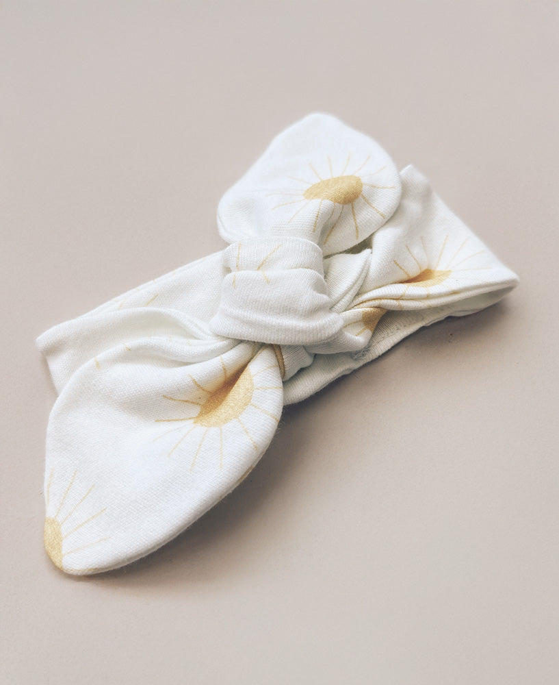 A Faixinha Solar ilumina o look infantil com delicadeza. Feita em algodão premium com sóis minimalistas, ela é macia, leve e confortável para usar o dia todo, criando um toque suave de charme para os dias quentes.