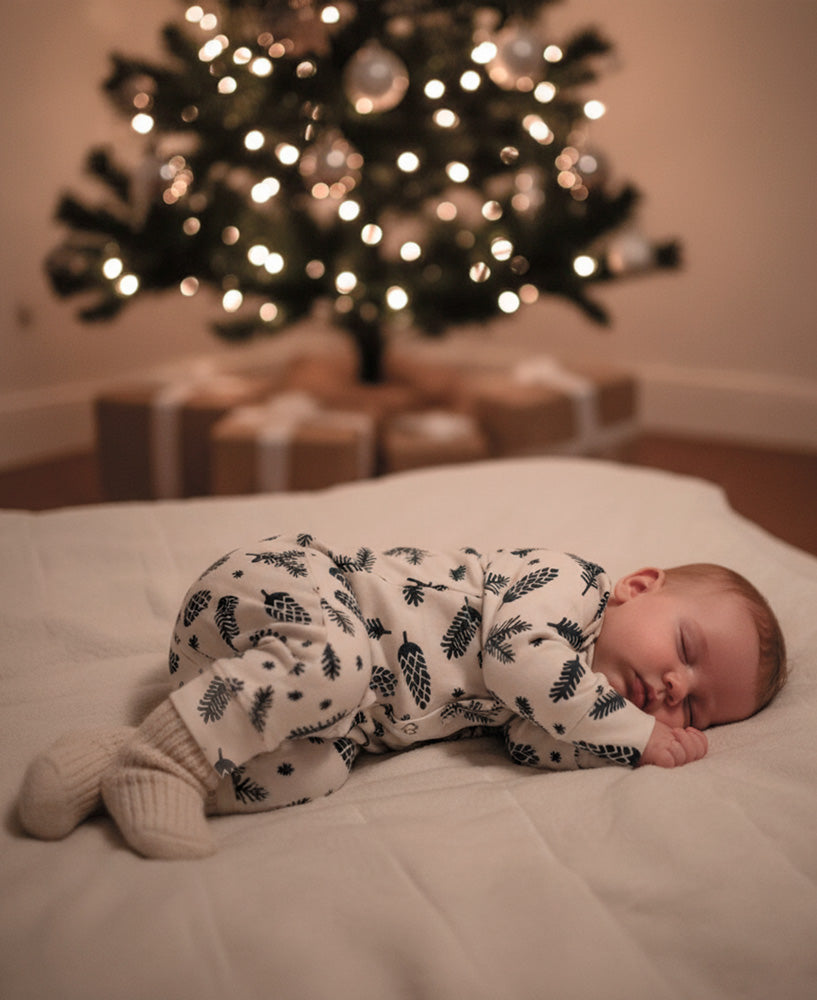 O Macacão de Bebê Pinhas Natal está disponível exclusivamente na MiniMalista Baby, uma marca especializada em roupas infantis minimalistas, atemporais e de alta qualidade.