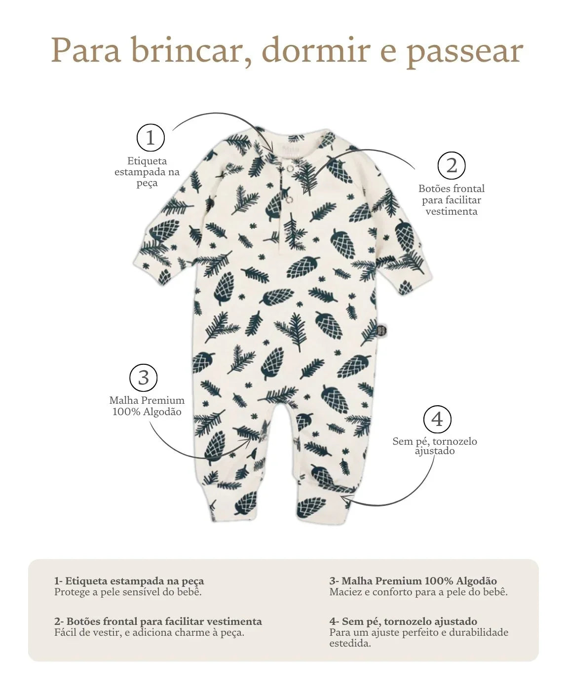 🌿 Por que escolher o Macacão de Bebê Verde com Estampa de Pinhas?