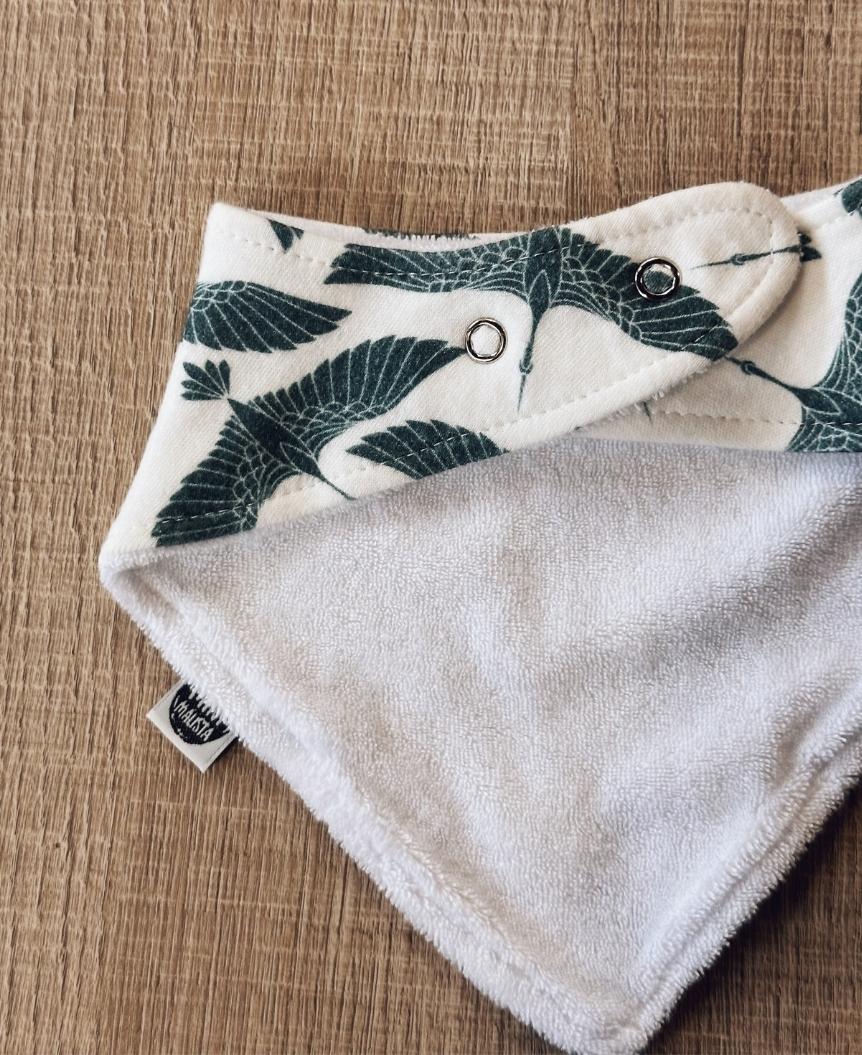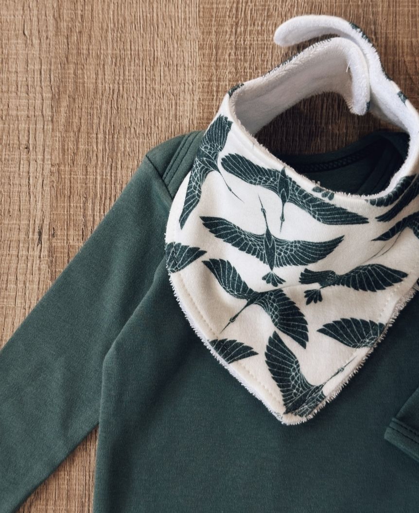 O babador bandana, além de completar o look com charme, tem o lado interno atoalhado, ideal para proteger a roupinha e manter o bebê sempre limpinho durante o uso.