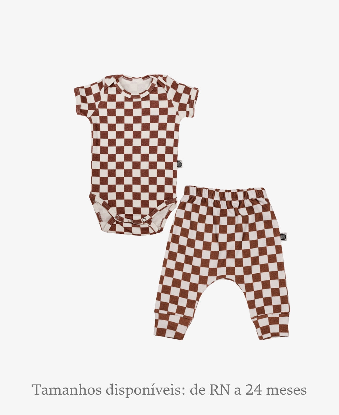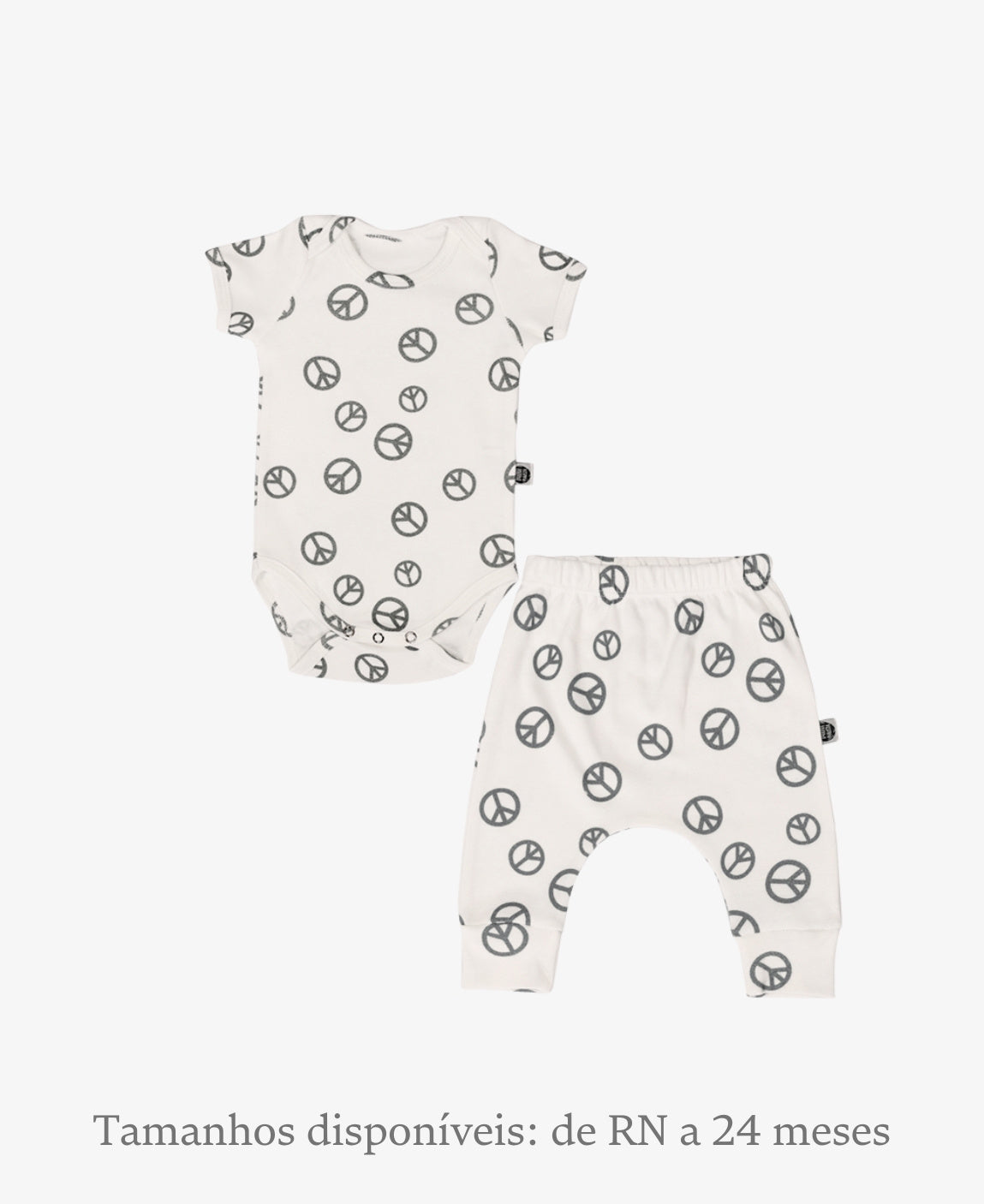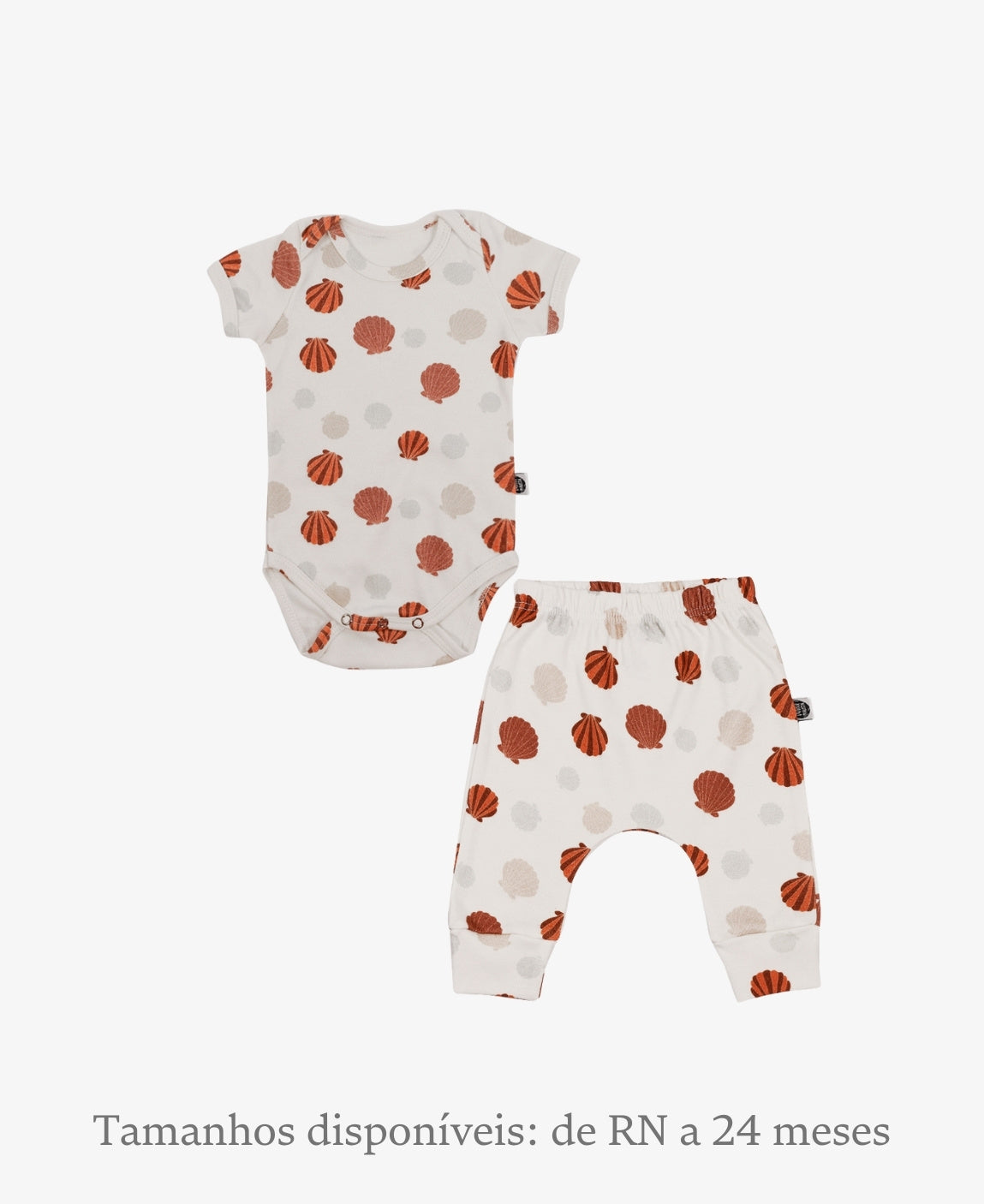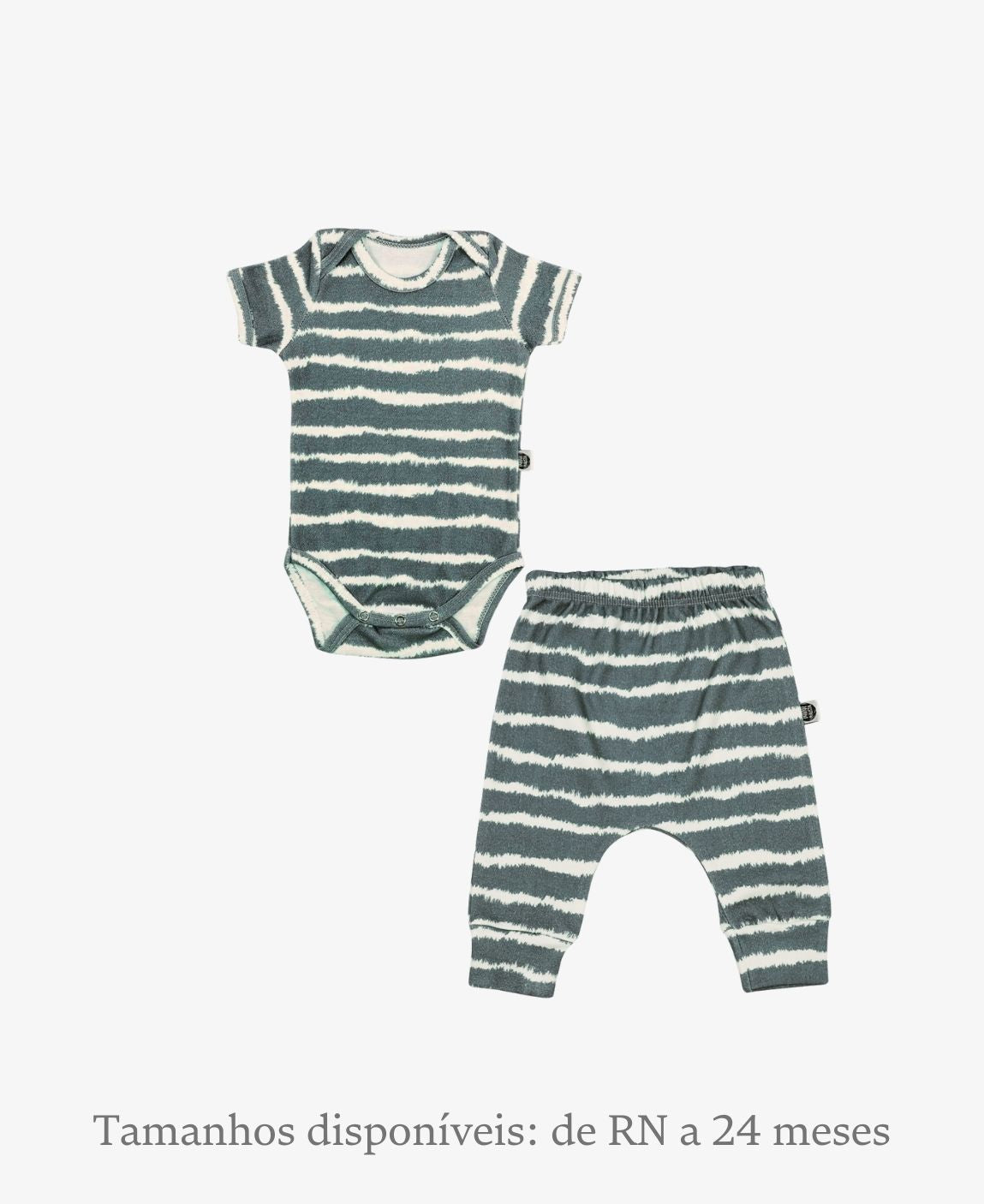 Disponível nos tamanhos de RN a 18-24 meses, o conjunto acompanha o crescimento do bebê, mantendo o mesmo padrão de conforto e qualidade.