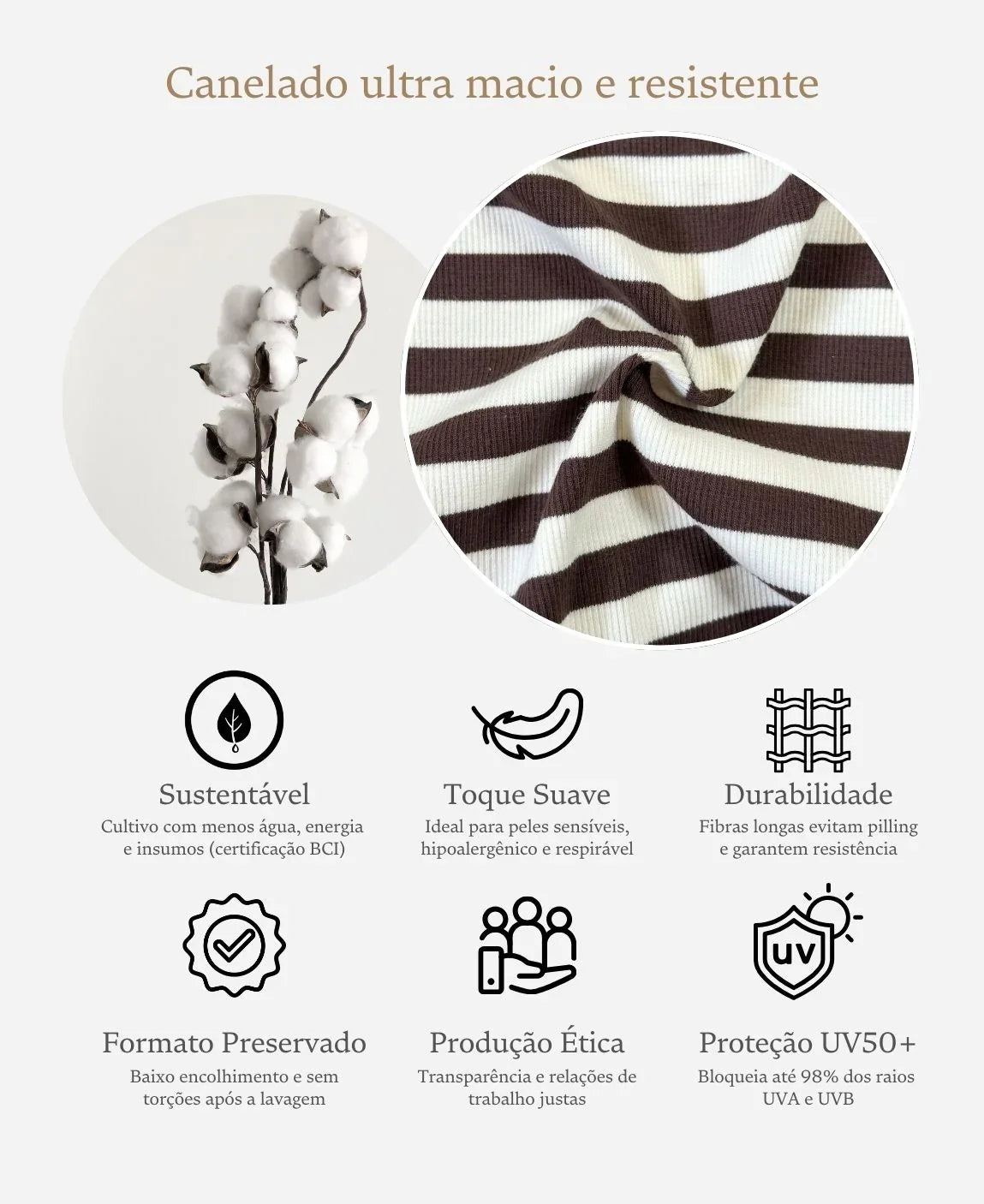 As peças caneladas da MiniMalista são confeccionadas em malha premium de ribana, composta por 94% algodão e 6% elastano, proporcionando conforto, elasticidade e um ajuste perfeito. Para garantir a durabilidade e manter o tecido impecável, siga as instruções abaixo: