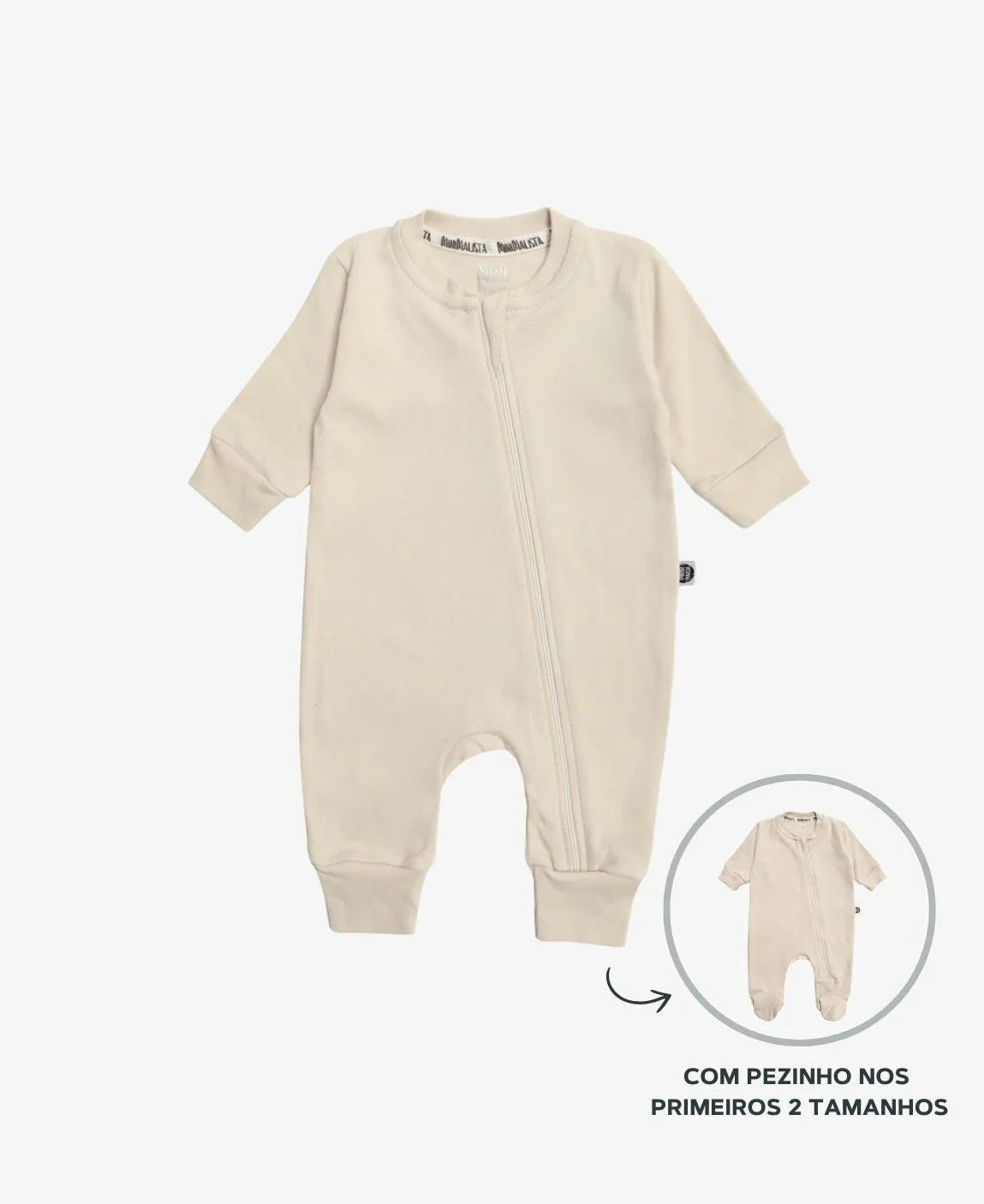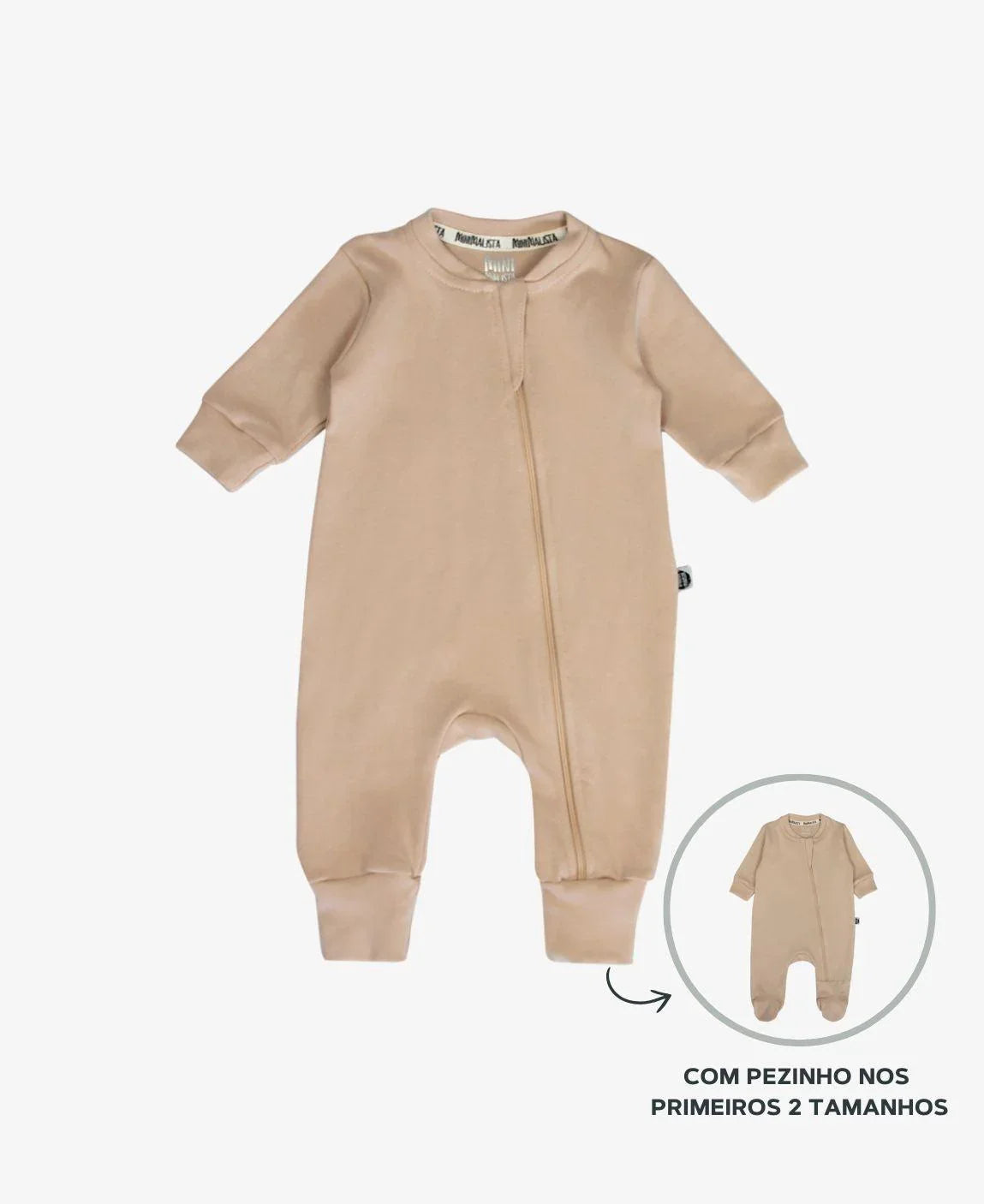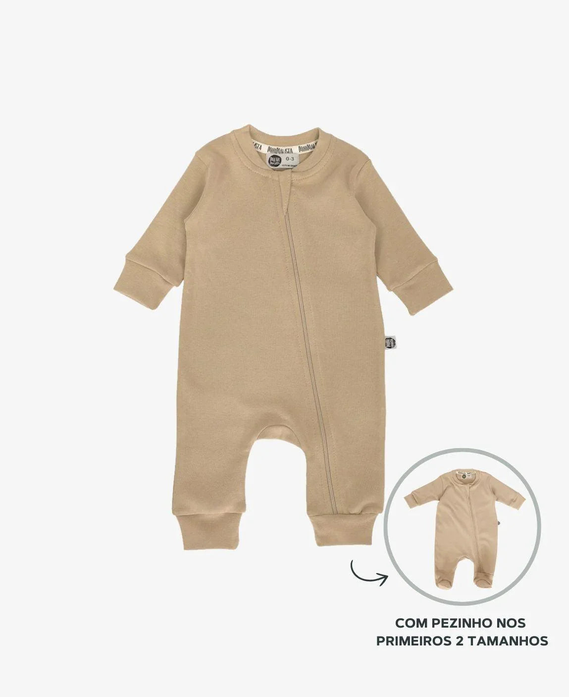 Macacão de Bebê Ziper com opção de Pezinho | Liso Beige