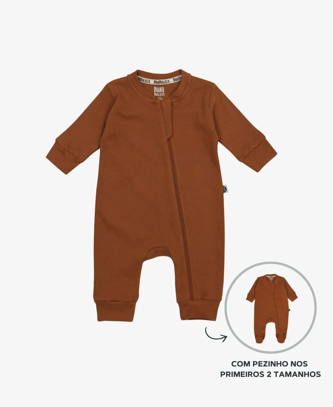 Macacão de Bebê com Zíper e Opção de Pezinho - Cor Liso Bege
