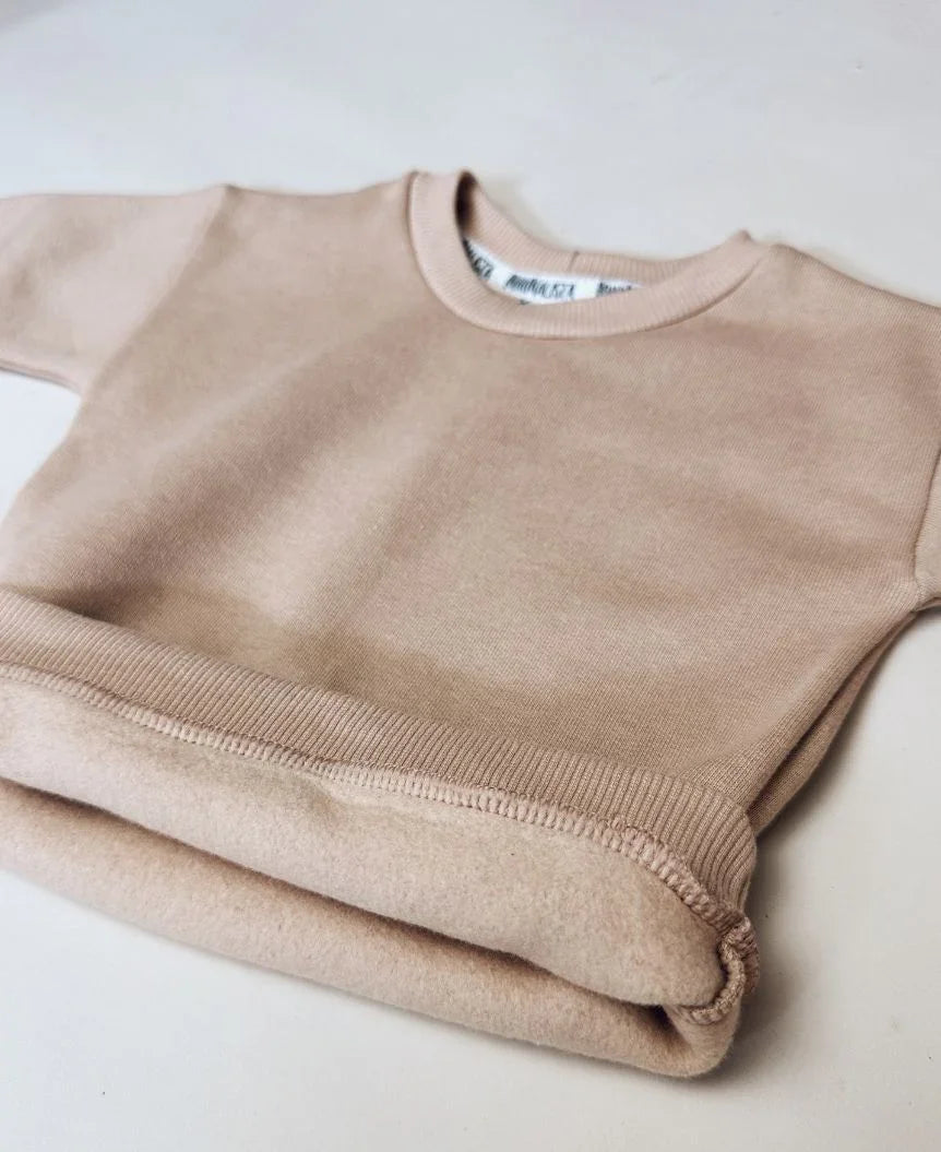 O Moletom Peluciado Unissex na cor Cinnamon (bege mais escuro) é perfeito para quem busca uma peça prática, confortável e cheia de estilo para bebês e crianças. Sua tonalidade elegante e unissex combina com diversas opções de looks, trazendo um toque de sofisticação ao dia a dia.