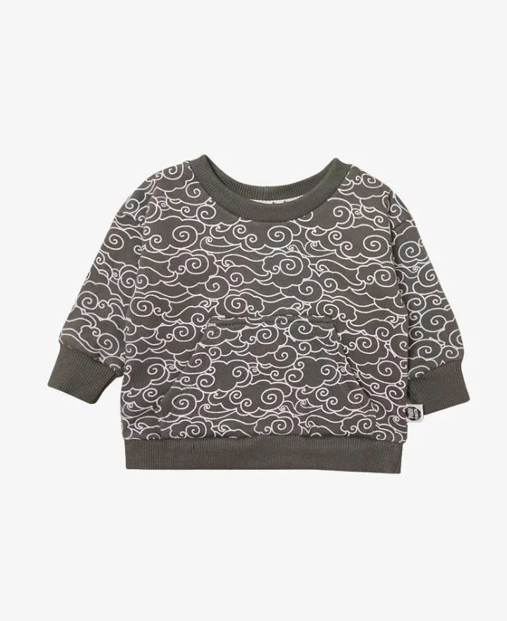 O Moletom Básico Peluciado | Dreamy é perfeito para aquecer os pequenos com estilo e delicadeza. Com a encantadora estampa Dreamy, que apresenta nuvens brancas contornadas sobre um fundo cinza grafite, essa peça traz um visual moderno, lúdico e unissex, ideal para meninos e meninas.