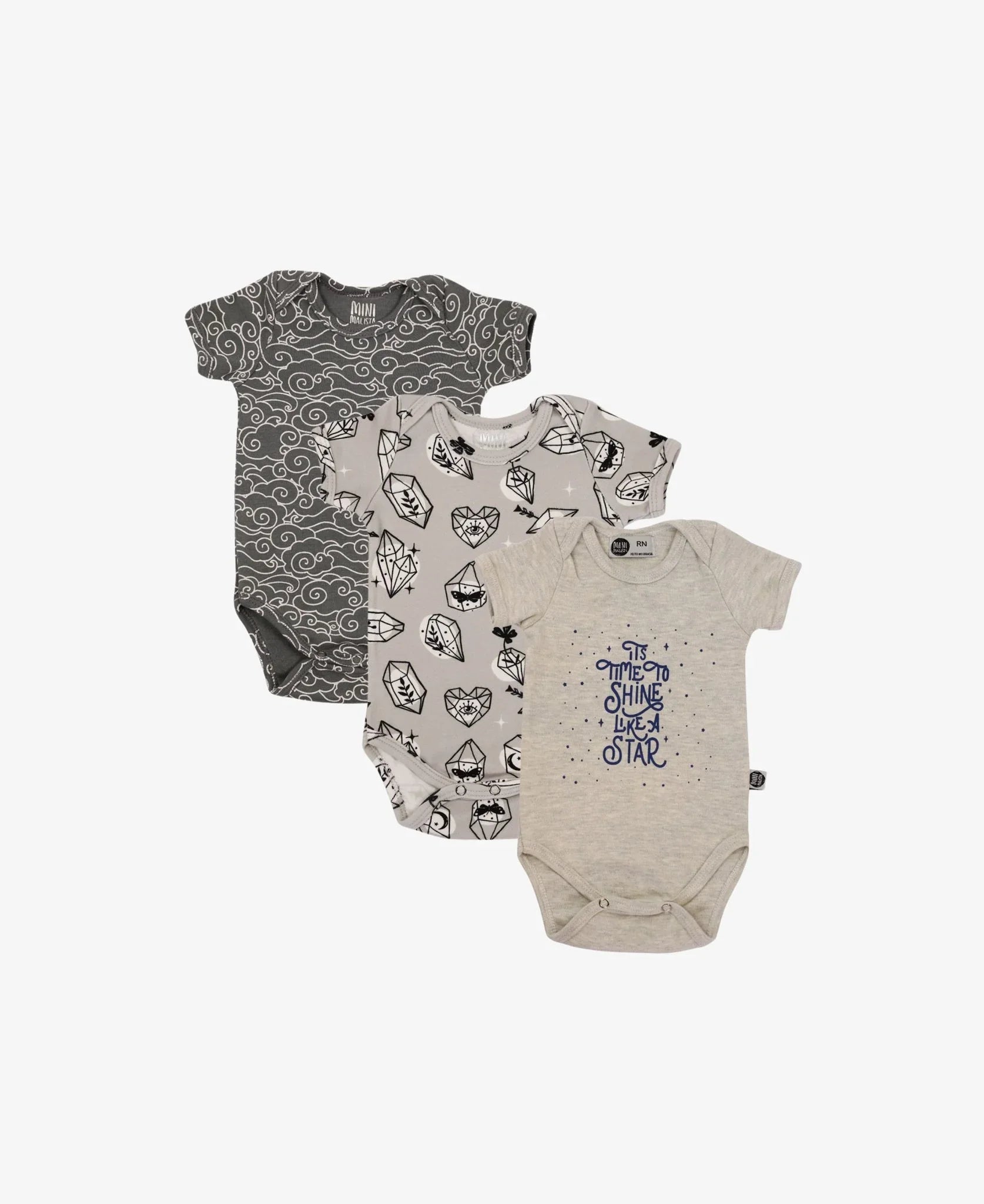 Kit 3 Bodies Manga Curta | Tons de Cinza