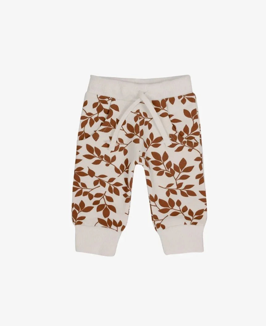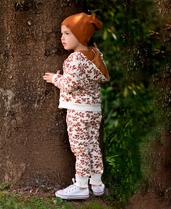 A Calça Moletom Peluciado | Laurel é mais do que uma peça de roupa: é um símbolo de conquistas e boas vibrações. Com um fundo claro e delicados ramos de louro em caramelo, essa estampa unissex remete à tradição histórica do louro como representação de sorte, vitória e força, trazendo um toque especial e sofisticado ao guarda-roupa infantil.