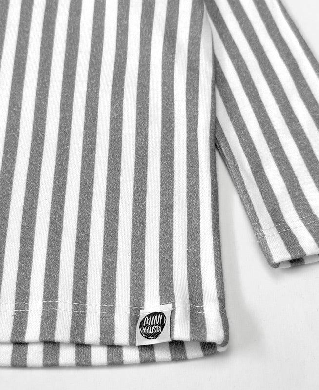 Camiseta Infantil de Inverno Manga Longa Unissex Raglan | Listras Retrô Cinza
