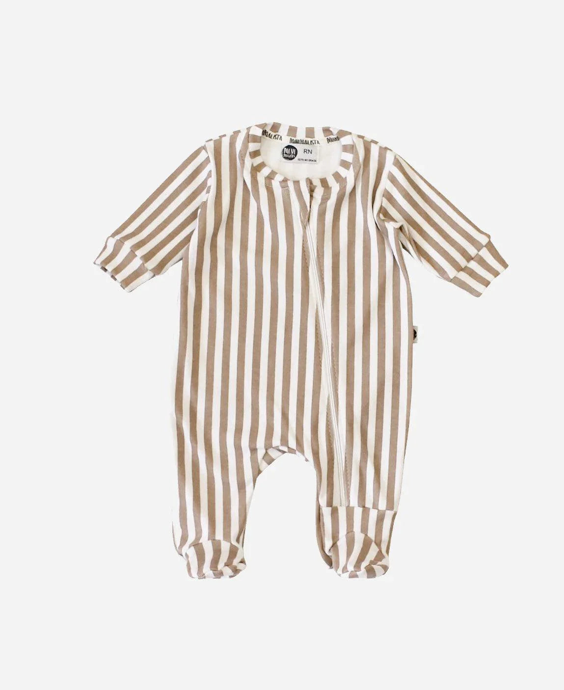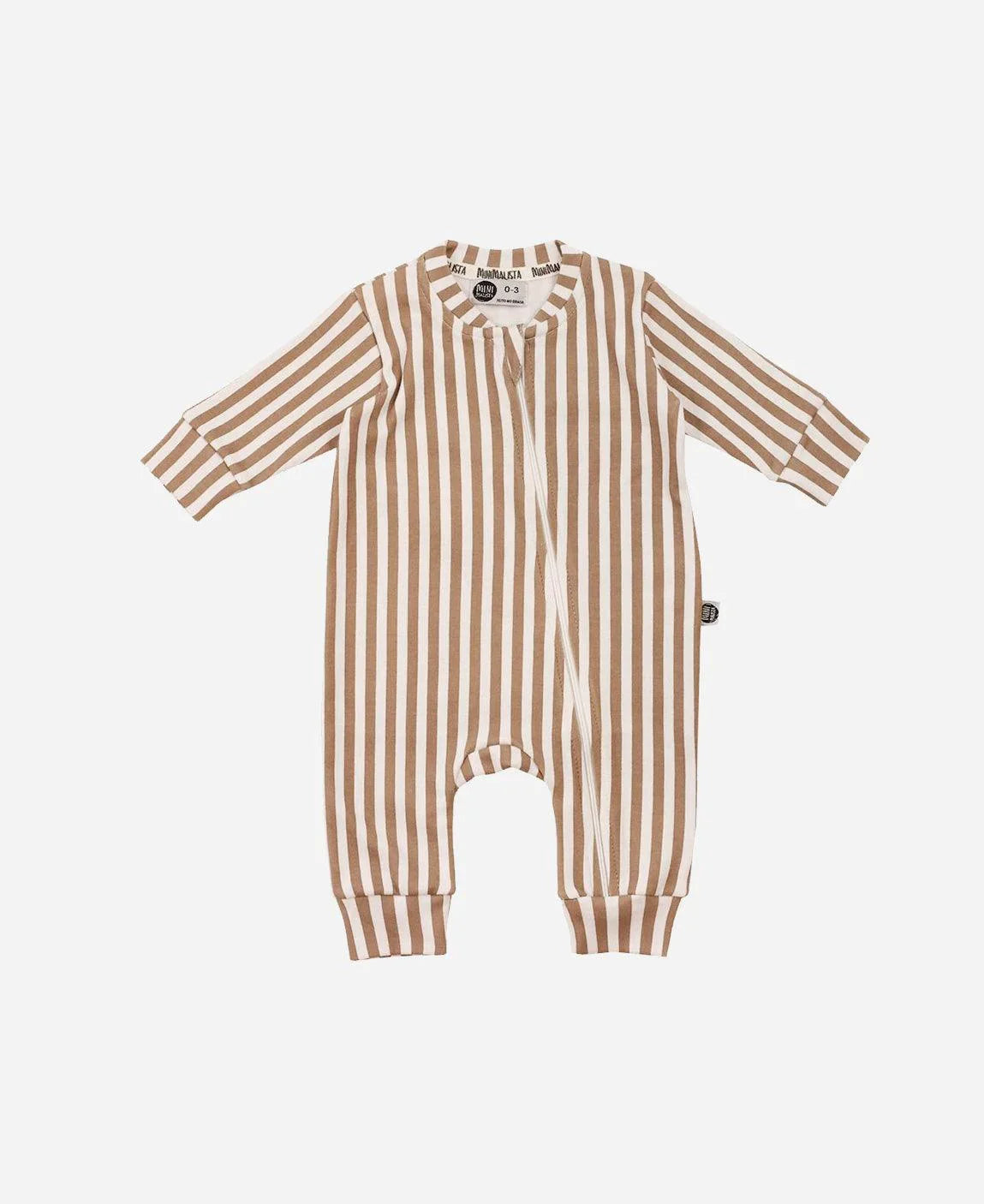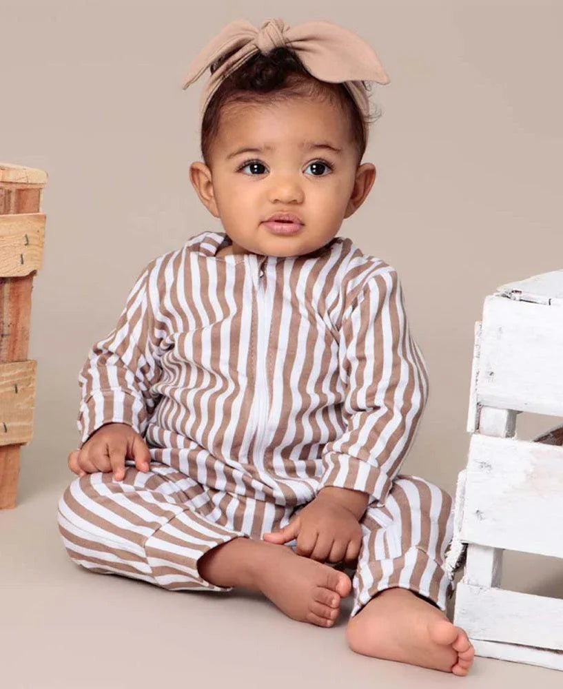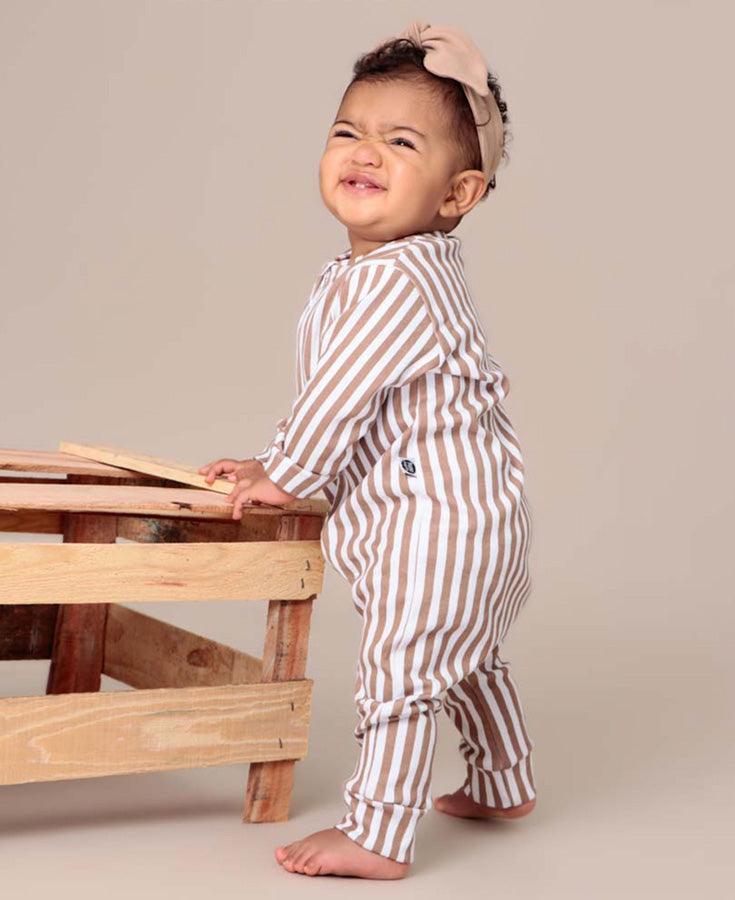 Macacão de Bebê Ziper com opção de Pezinho | Listras Retrô Avelã