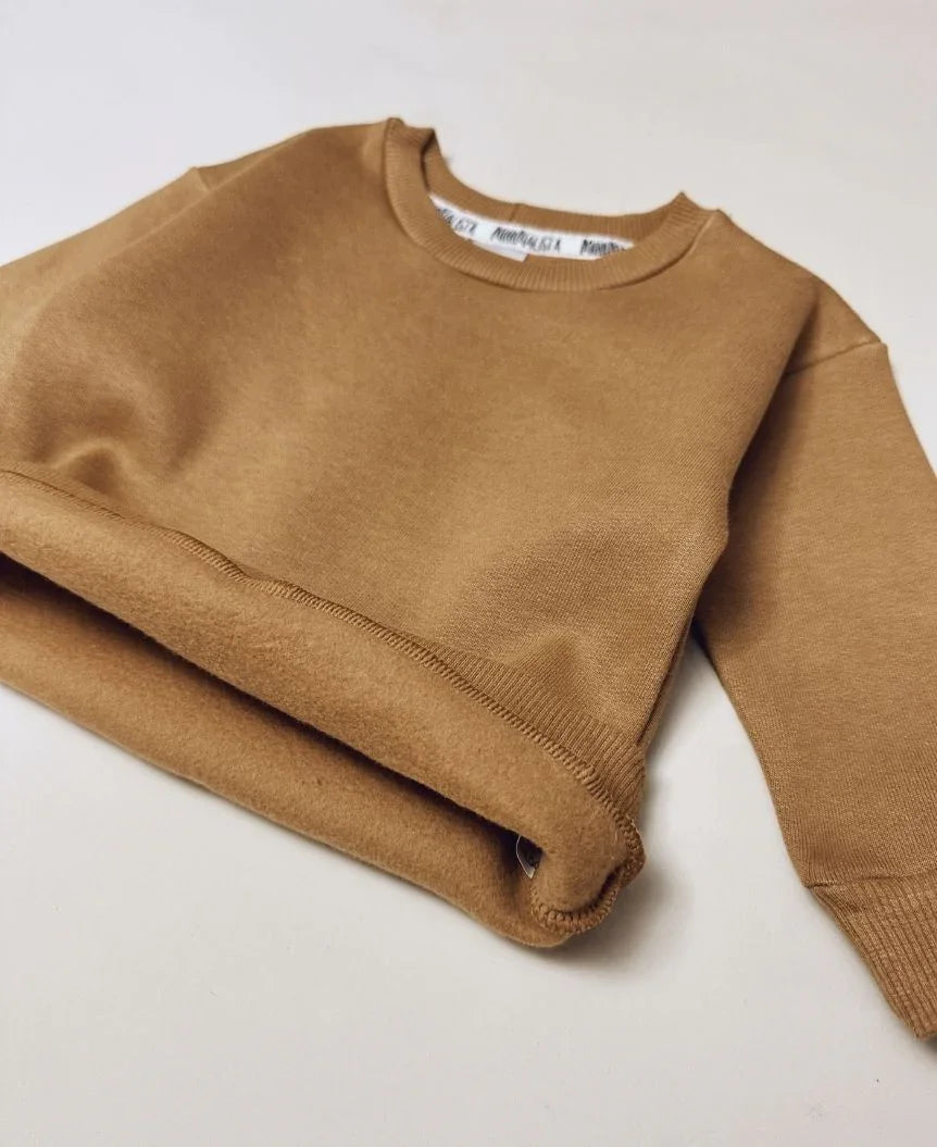 O Moletom Peluciado Unissex na cor Goldie (um caramelo com tonalidade mel, quase mostarda) é a escolha perfeita para quem busca um visual sofisticado e acolhedor para os pequenos. Sua tonalidade quente e versátil combina perfeitamente com os dias frescos do outono e inverno, trazendo charme e estilo ao guarda-roupa infantil.