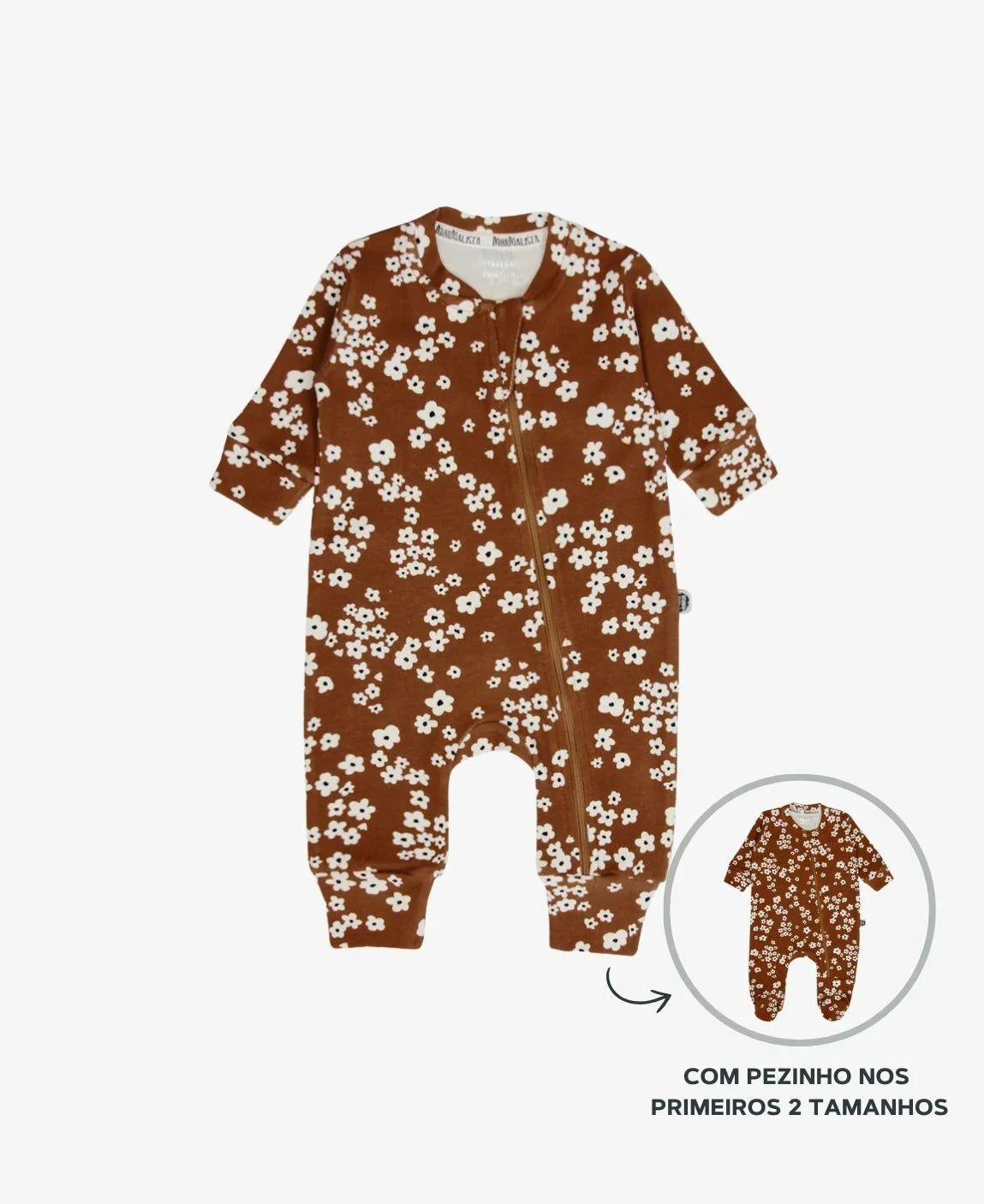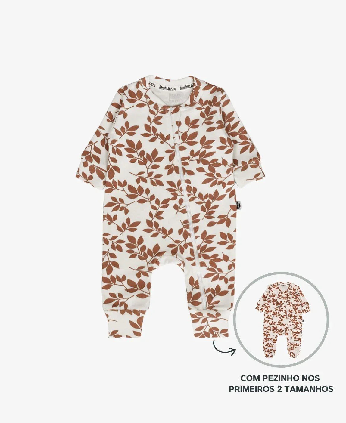 - Nos tamanhos menores (Recém-Nascido e 1-3 meses): o macacão vem com pezinho fechado, perfeito para manter os recém-nascidos bem quentinhos.