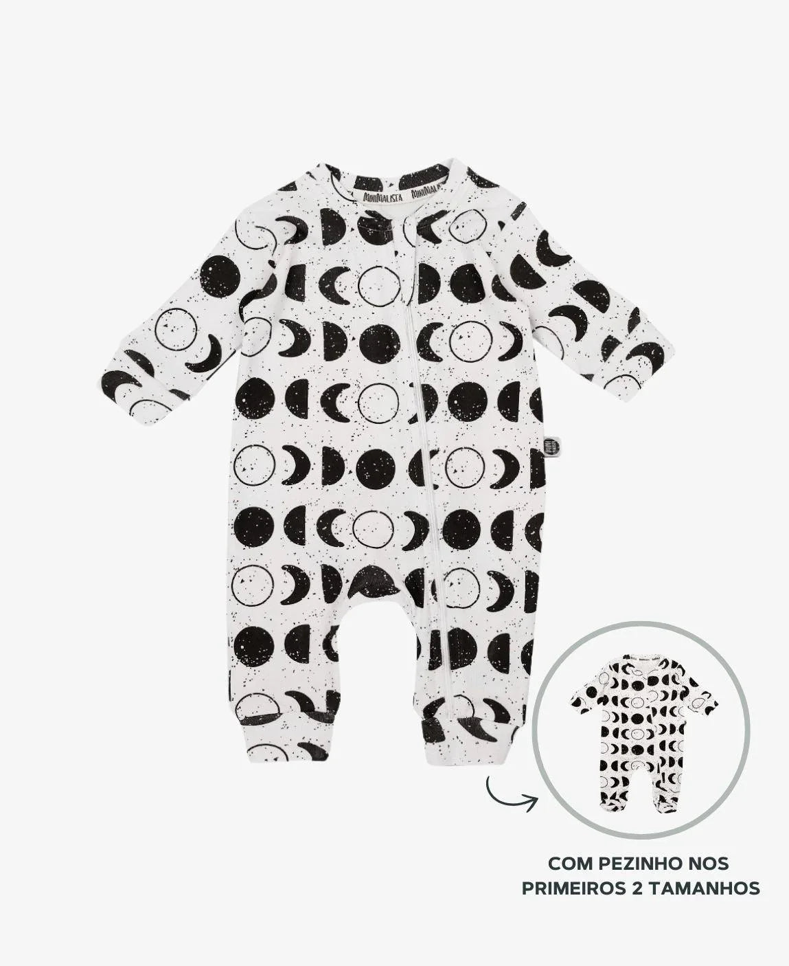 - Nos demais tamanhos (0-3 meses até 12-18 meses): sem pezinho fechado, pensado para acompanhar o crescimento e os primeiros passinhos, permitindo maior liberdade e durabilidade da peça.