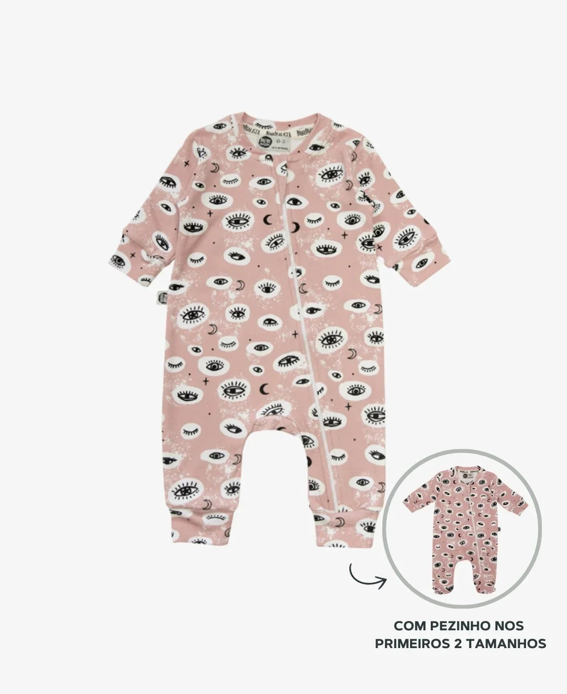 - Detalhes: Modelo macacão com ziper, com opção com e sem pézinho, com proteção na gola, mangas longas, ziper até o pé.