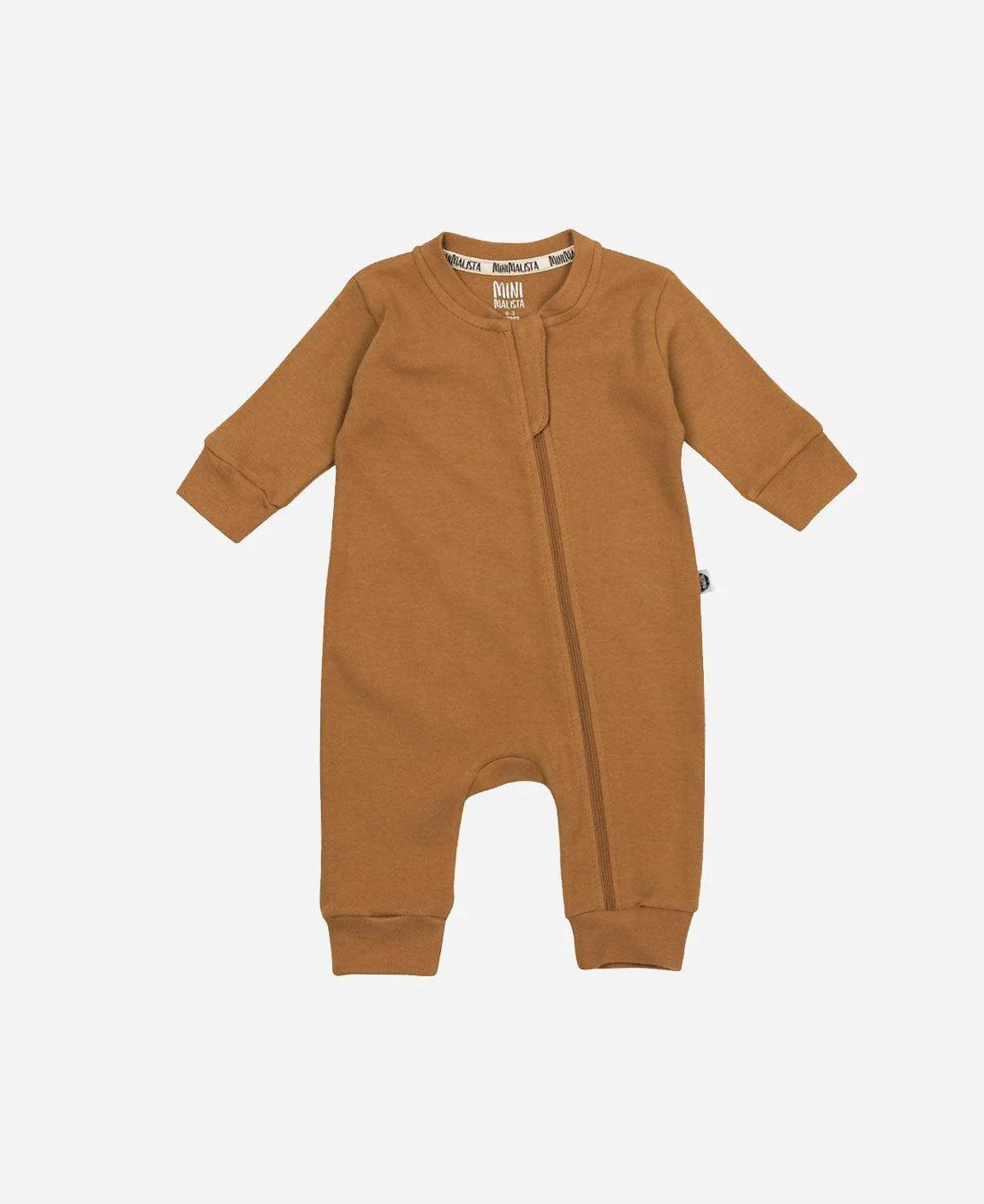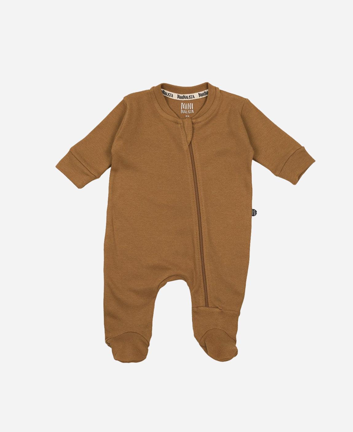 Macacão de Bebê com Zíper e Opção de Pezinho - Cor Goldie (mostarda)