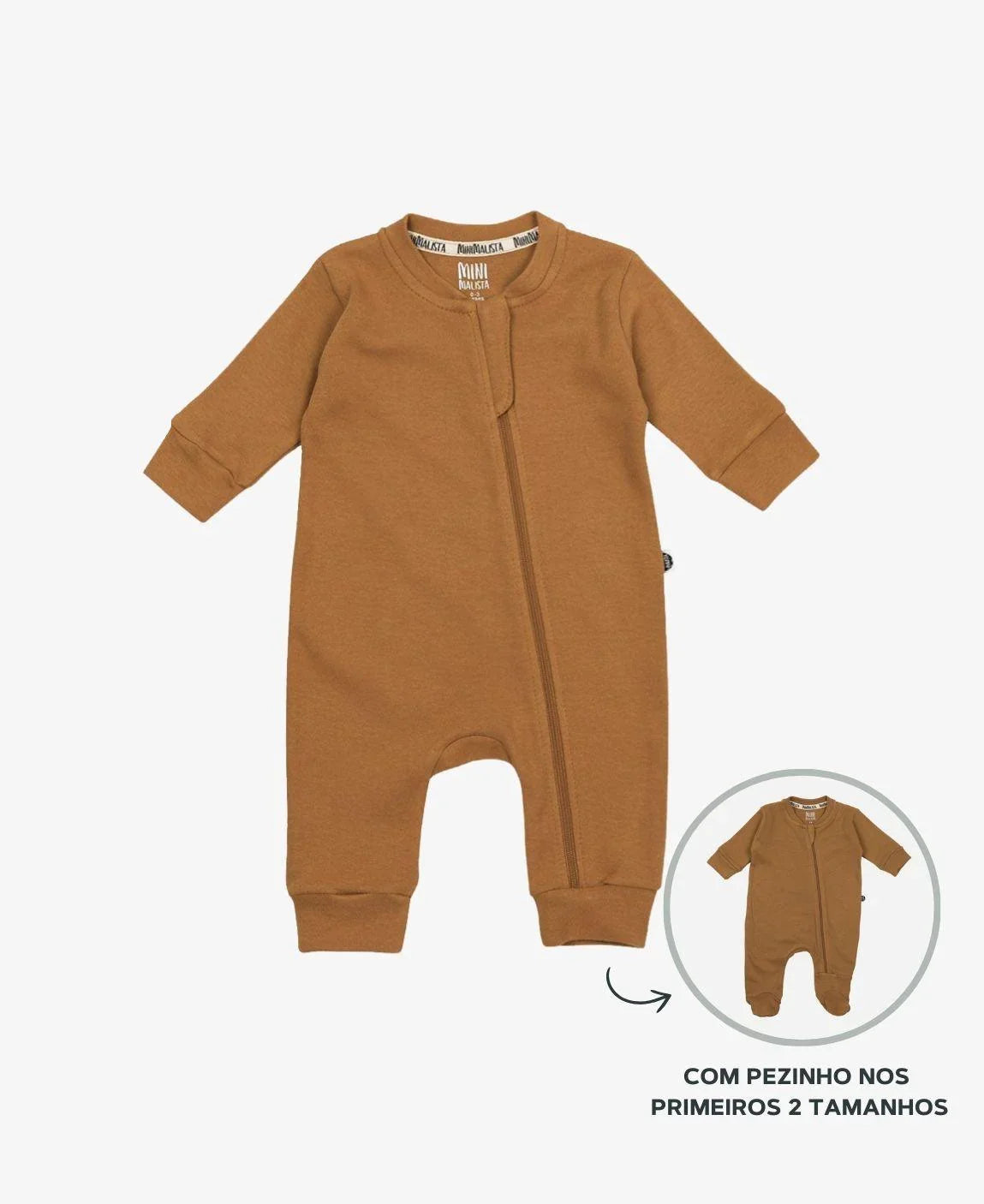 Macacão de Bebê Ziper com opção de Pezinho | Liso Goldie