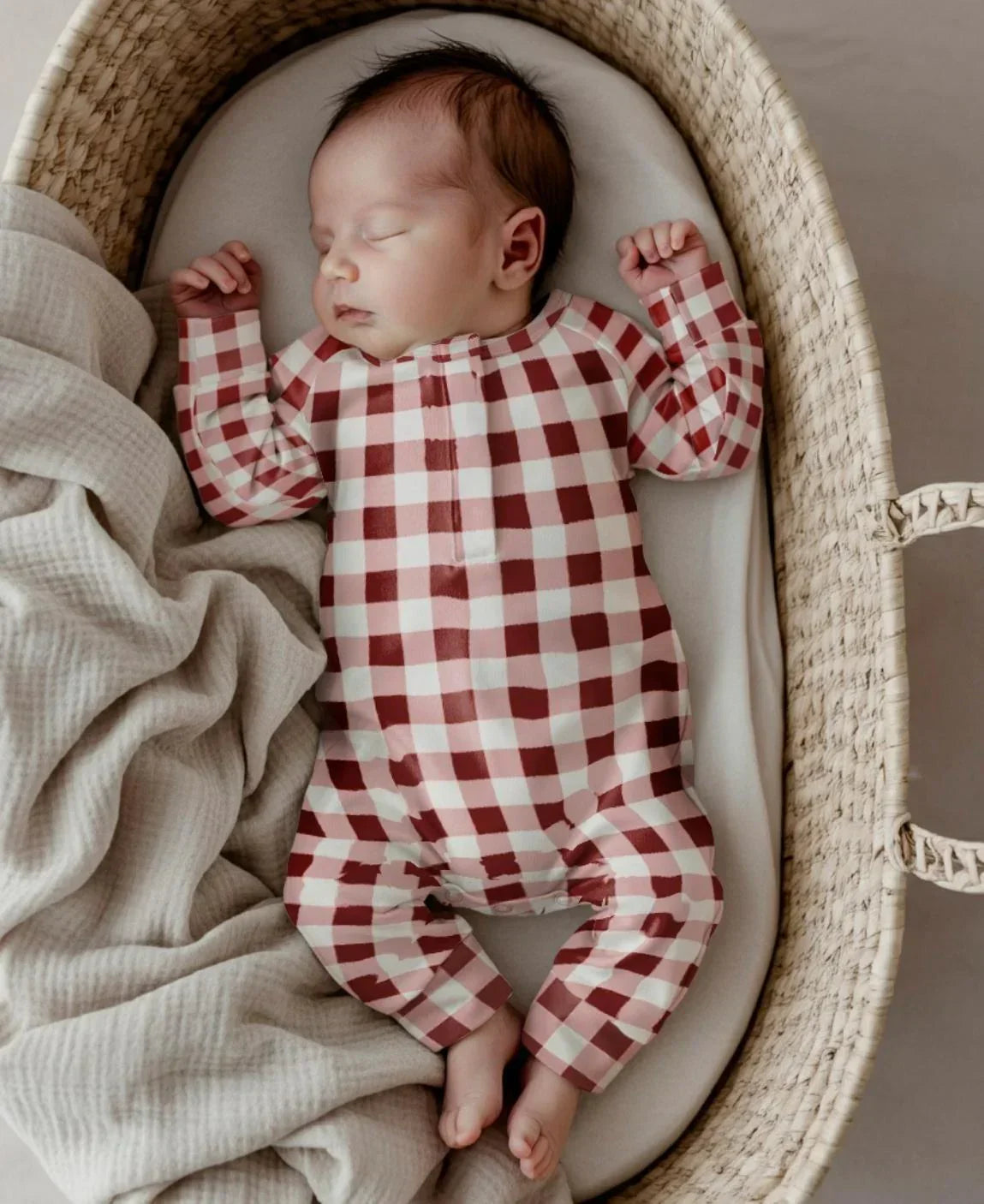Macacão de Bebê Xadrez Vermelho Vichy Wine | Clássico, Atemporal e Confortável