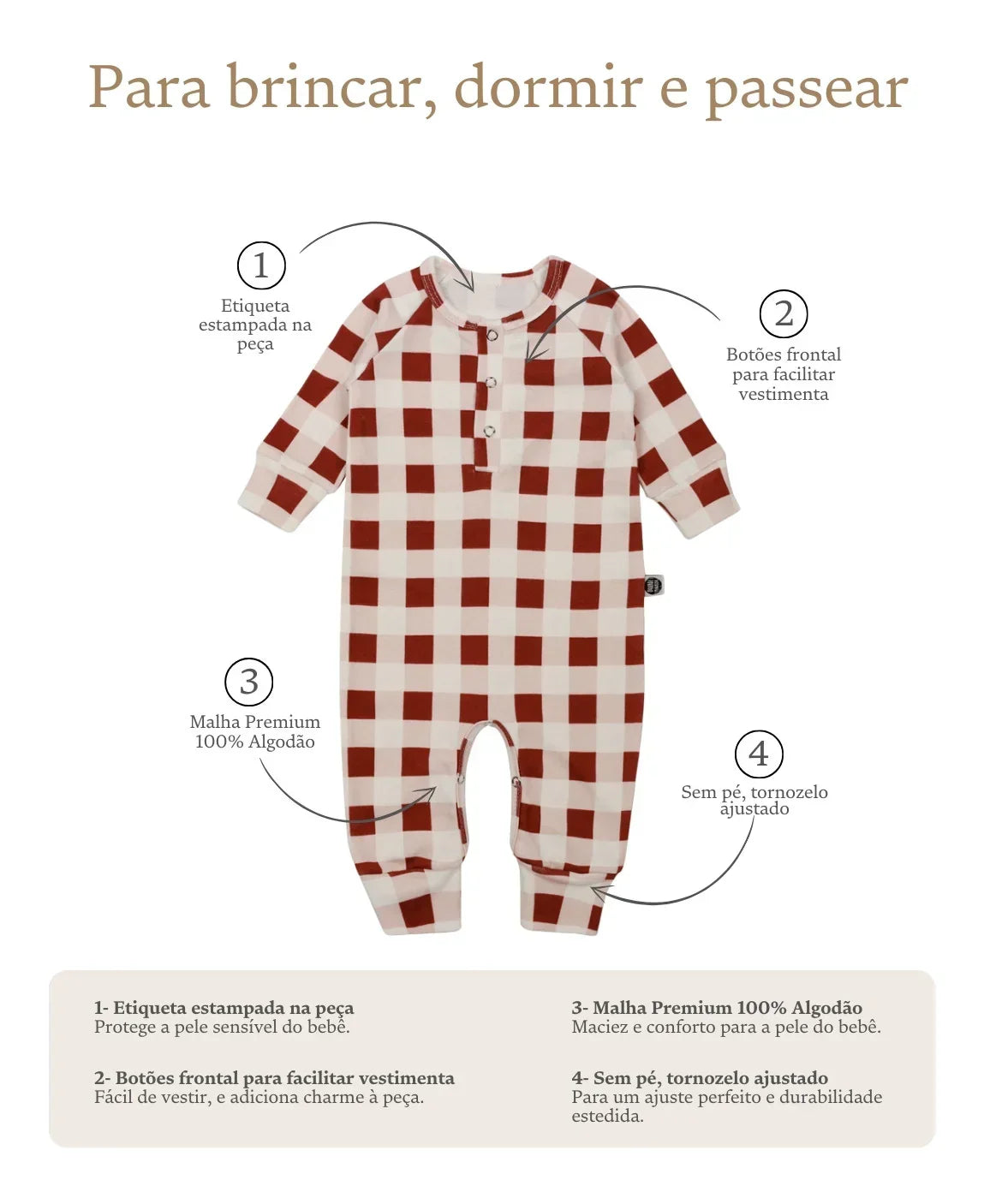Se você procura um macacão de bebê xadrez para festa, Natal ou momentos especiais, essa peça é a escolha perfeita.