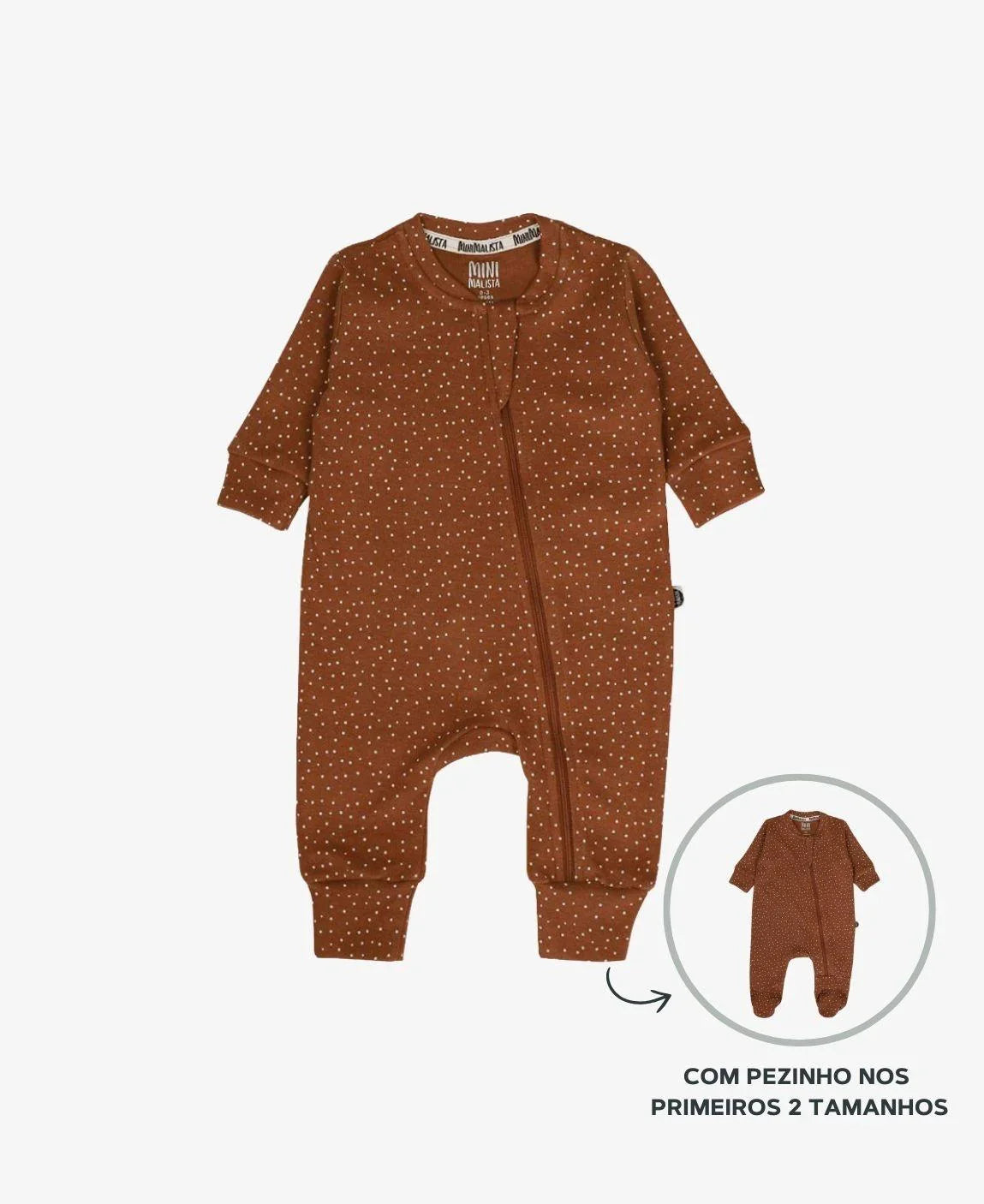 Macacão de Bebê Ziper com opção de Pezinho | Bolinhas Outono