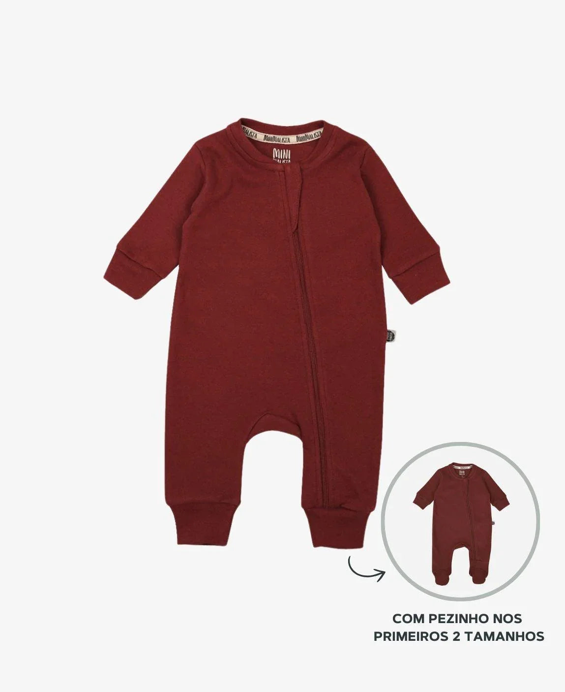 Macacão de Bebê Ziper com opção de Pezinho | Liso Merlot