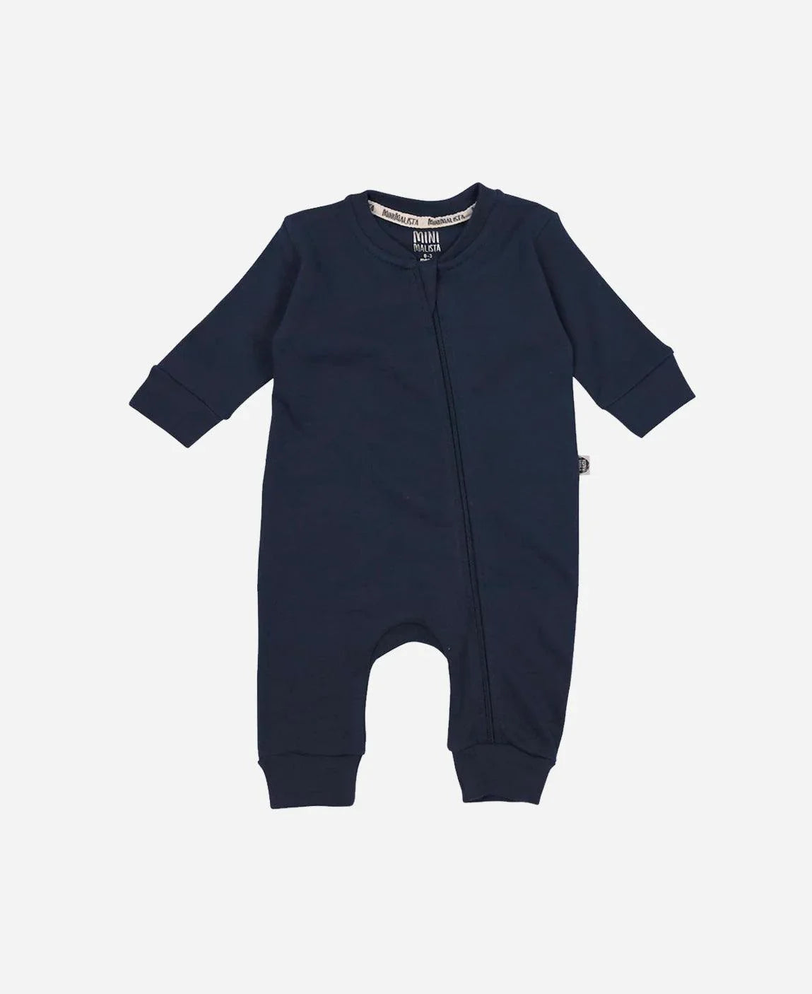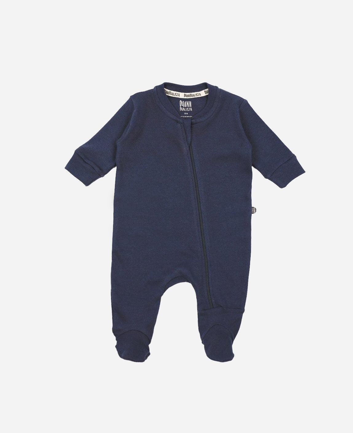 Macacão de Bebê com Zíper e Opção de Pezinho - Liso Ocean (azul marinho)