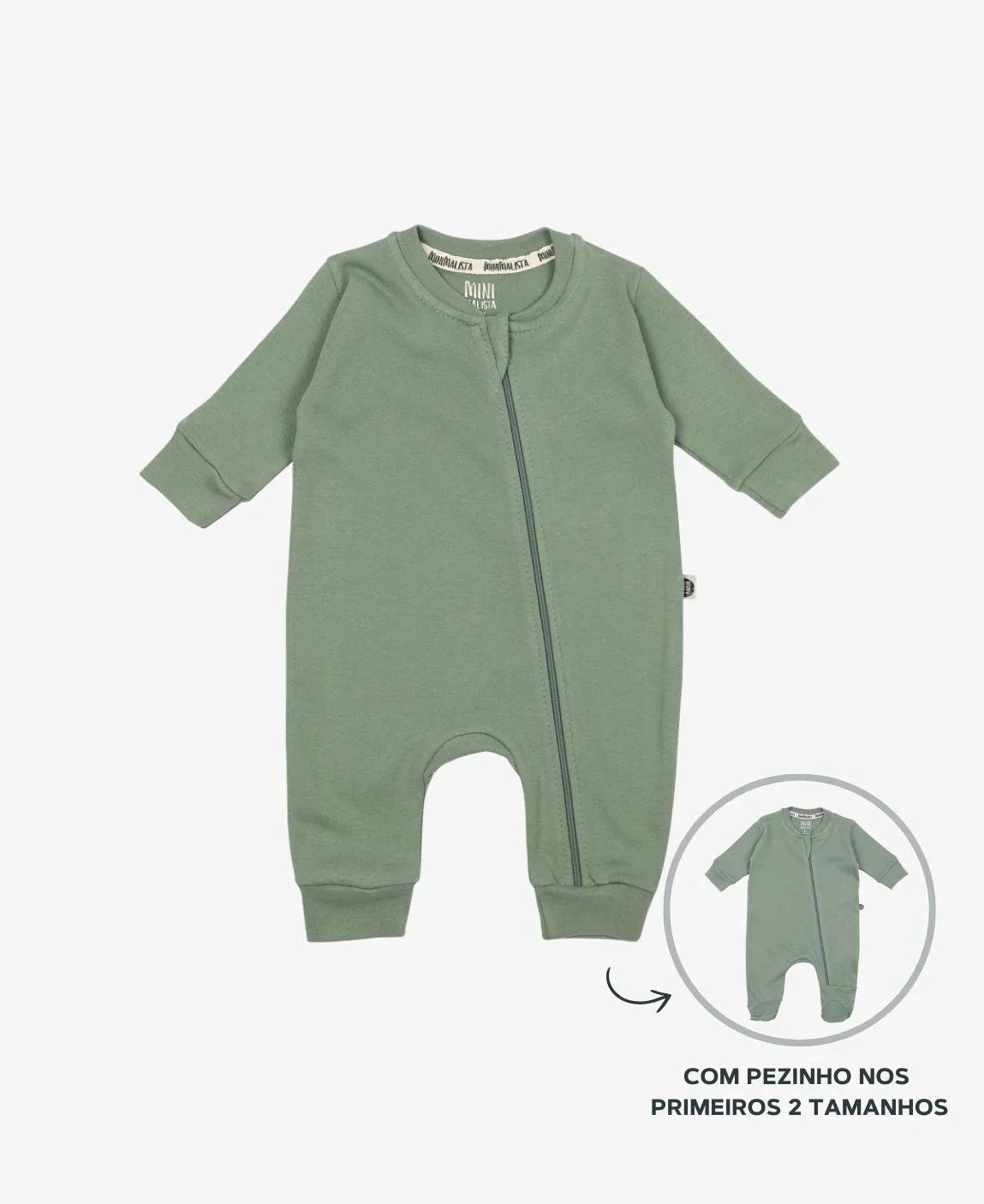 Macacão de Bebê Ziper com opção de Pezinho | Liso Sage