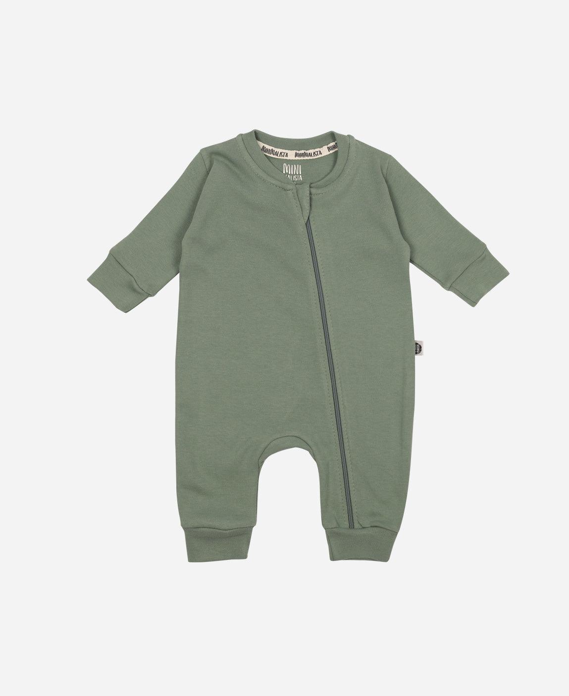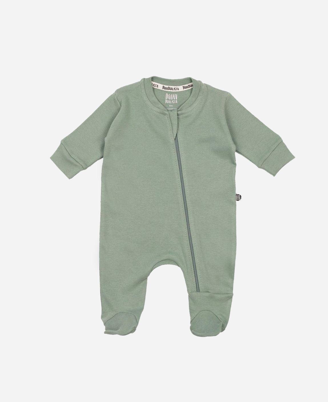 Macacão de Bebê com Zíper e Opção de Pezinho - Cor Verde Sage