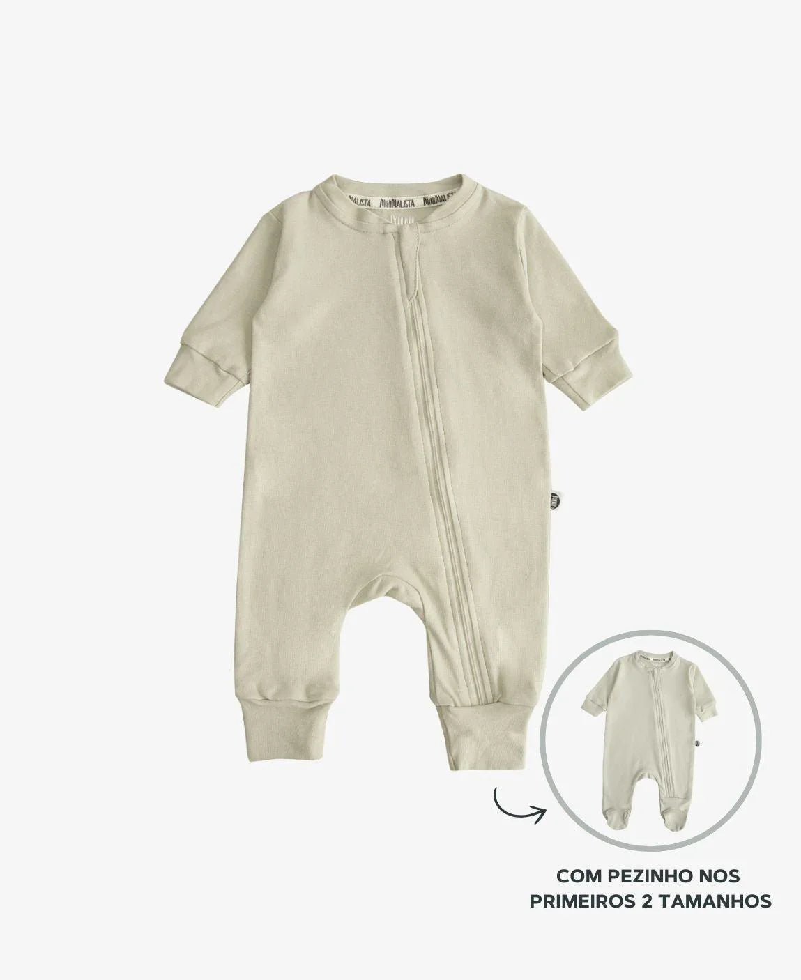 Macacão de Bebê Ziper com opção de Pezinho | Liso Stone