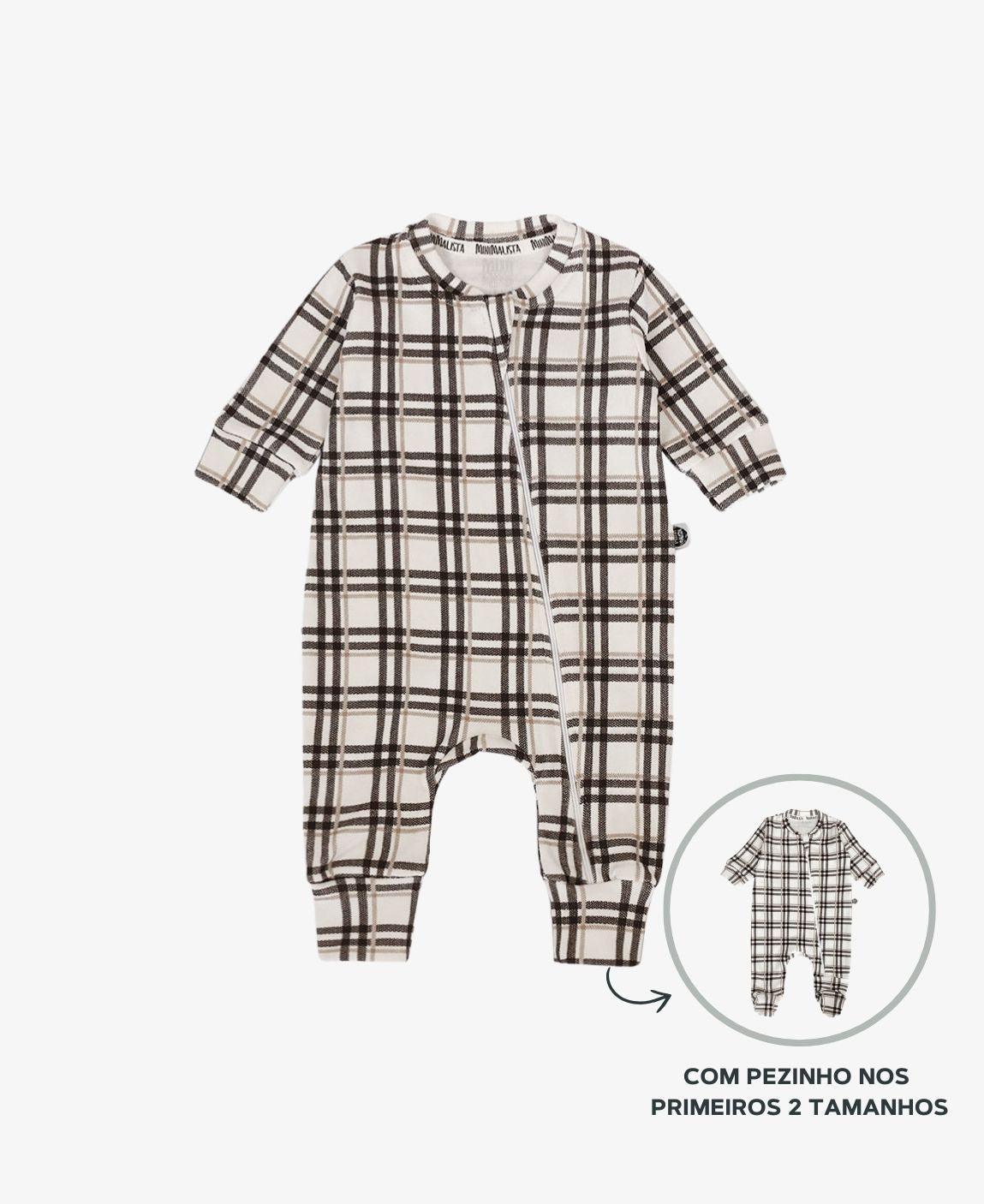 Macacão de Bebê Ziper com opção de Pezinho | Xadrez Plaid