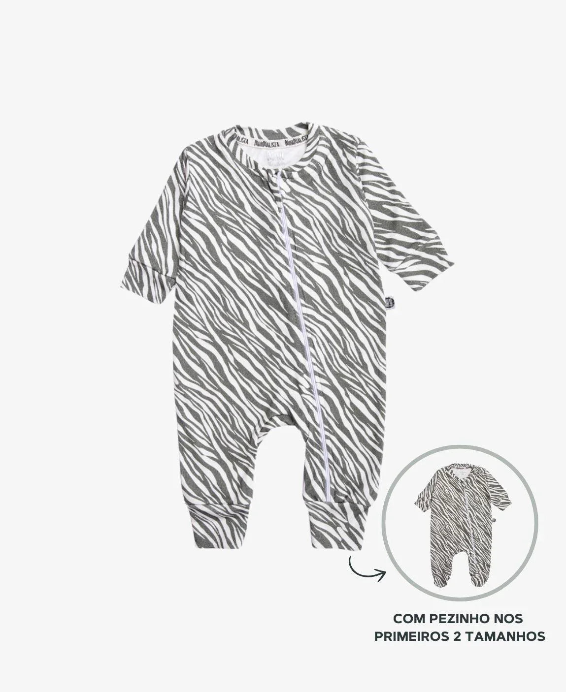 Macacão de Bebê Ziper com opção de Pezinho | Zebra